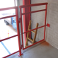 Gelænder, med integrerede låger og afskærmninger. Pulverlakeret i rød, for at matche eksisterende spær. Pulverlakeringen giver en meget slidstærk overflade og flot finish.