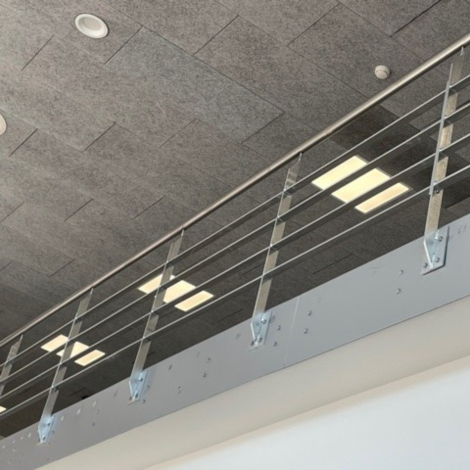 Gelænder til stor lagerbygning. Afsluttet med en lækker håndliste af rustfri rør.