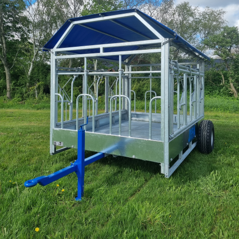 Det unikke ved denne vogn er, at den er udstyret med 6-dyrs Special Fanggitter til Højlandskvæg ( 1x3 og 1x3) på højre og venstre langside. Af standardløsninger for ekstraudstyr, valgte kunden, at udstyre vognen med tag.