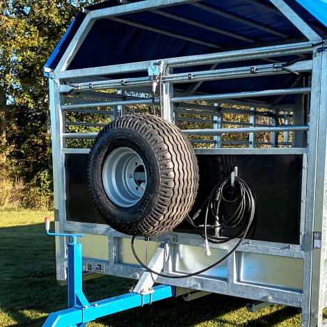 Vil du have et reservehjul med på farten, så er denne reservehjulsholder det oplagte valg! Holderen fastmonteres i fronten af vognen, hvor den sidder uden at genere føreren, men samtidig er den nem at komme til, hvis uheldet skulle være ude.
