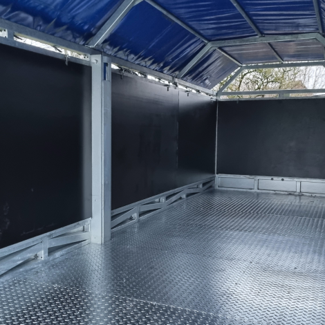 Det unikke ved denne vogn er, at den er udstyret med aftagelige plader ved kirkestolene hele vejen rundt. Pladerne er designet med en smart låsefunktion, så de nemt og hurtigt kan på- og afmonteres. Af standardløsninger for ekstraudstyr, valgte kunden at udstyre vognen med tag.