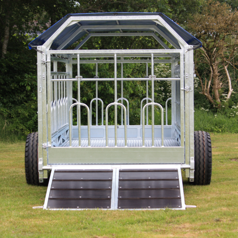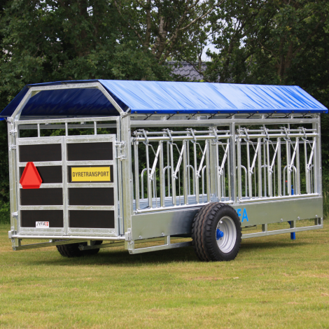 The 6M Combi Trailer (CBV600) is equipped with a large gate at the rear end. The external trailer width, incl. wheels is 2,85 meters, and the total length, incl. drawbar is 7,4 meters. The actual trailer box is 6 meters long, and the inner width is 2 meters. This gives you a total floor space of 11,8 m2 (2m x 5,9m), allowing you to carry approx. 7-9 animals, according to Danish area requirements.