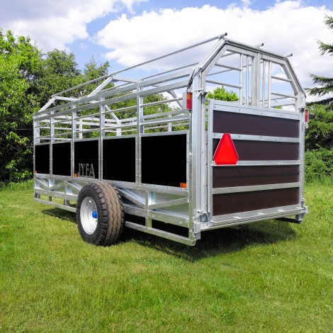 The 5M Transport Trailer (TRA500) is 5 meters long, and has a total width of 2 meters. This gives you a total floor space of 9,8 m2 (2m x 4,9m). The trailer is equipped with dobbel doors, ramp and external wheels. The external width is 2,85 meters, and the total length, incl. drawbar is 6,4 meters. The transport trailer has, the capacity of approx. 6-8 animals according to Danish area requirements.