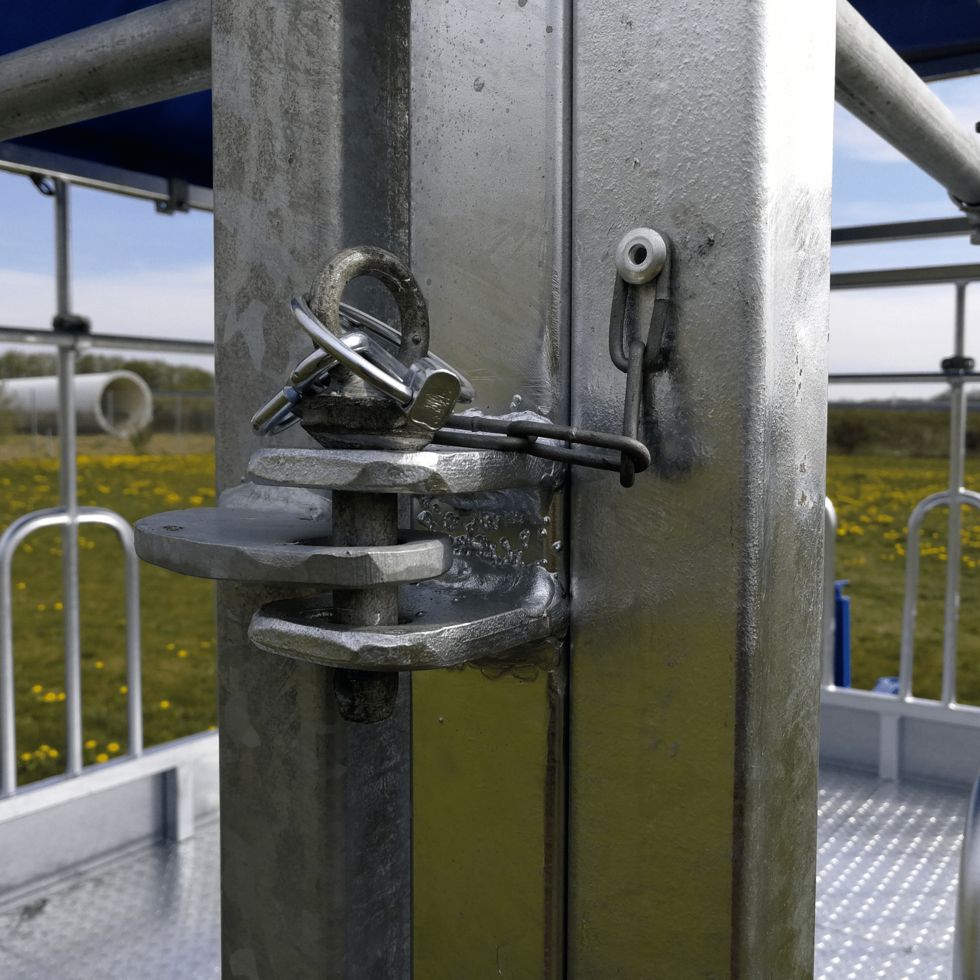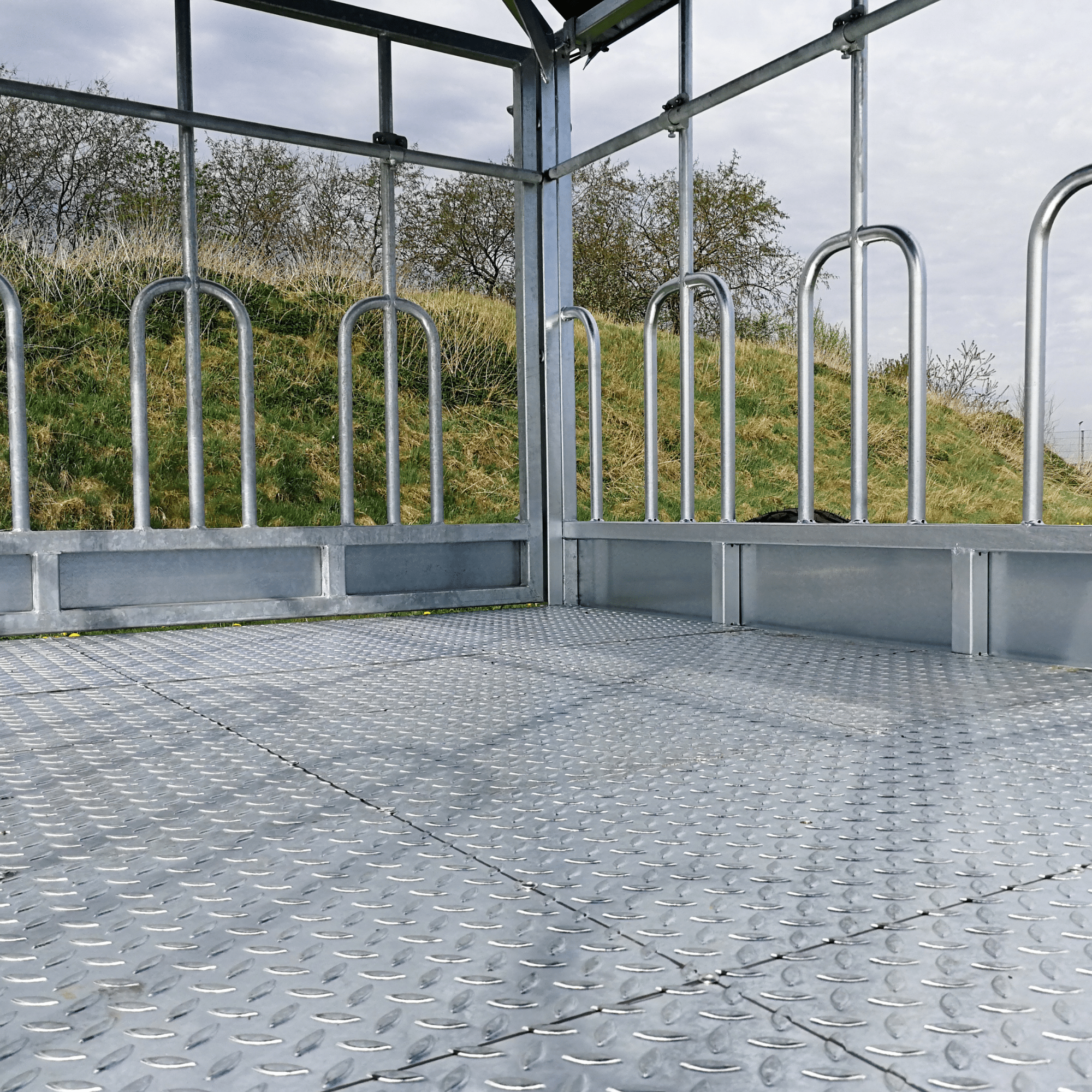 This model comes, as standard with 4 church chairs at each end, and 5 church chairs on each long side. If you need to trap the animals, the model can be equipped with 1×4 or 1×5-animals trap gate on one or both long sides, as you wish. For diary cattle and calvs, we recommend 1×5-animals trap gates and for beef cattle we recommend 1×4-animals trap gates. All trap gates come with an adjustable neck opening bar.