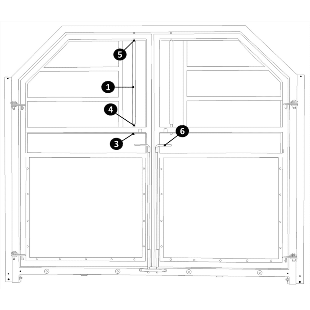 Ønskes en komplet låsestang til dobbeltdør i endegavl, skal der bestilles nr. 1, 3, 4 & 5.