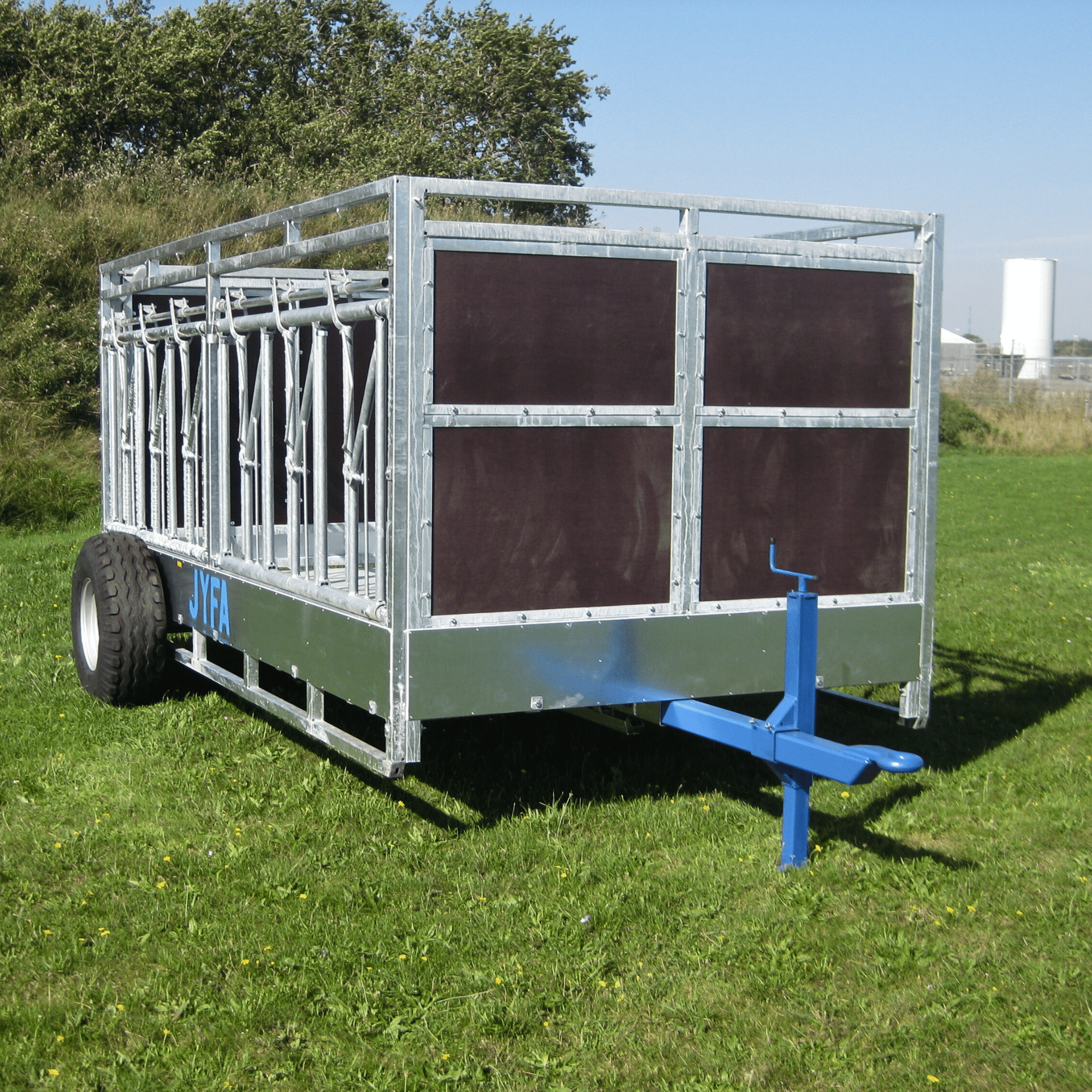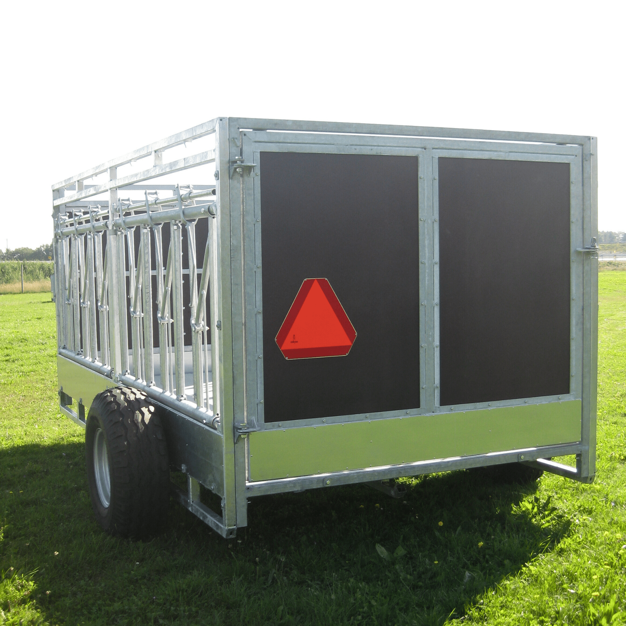 Vognen er udstyret med fanggitter på begge langsider, og med en specialdesignet front- og endegavl med træplade.