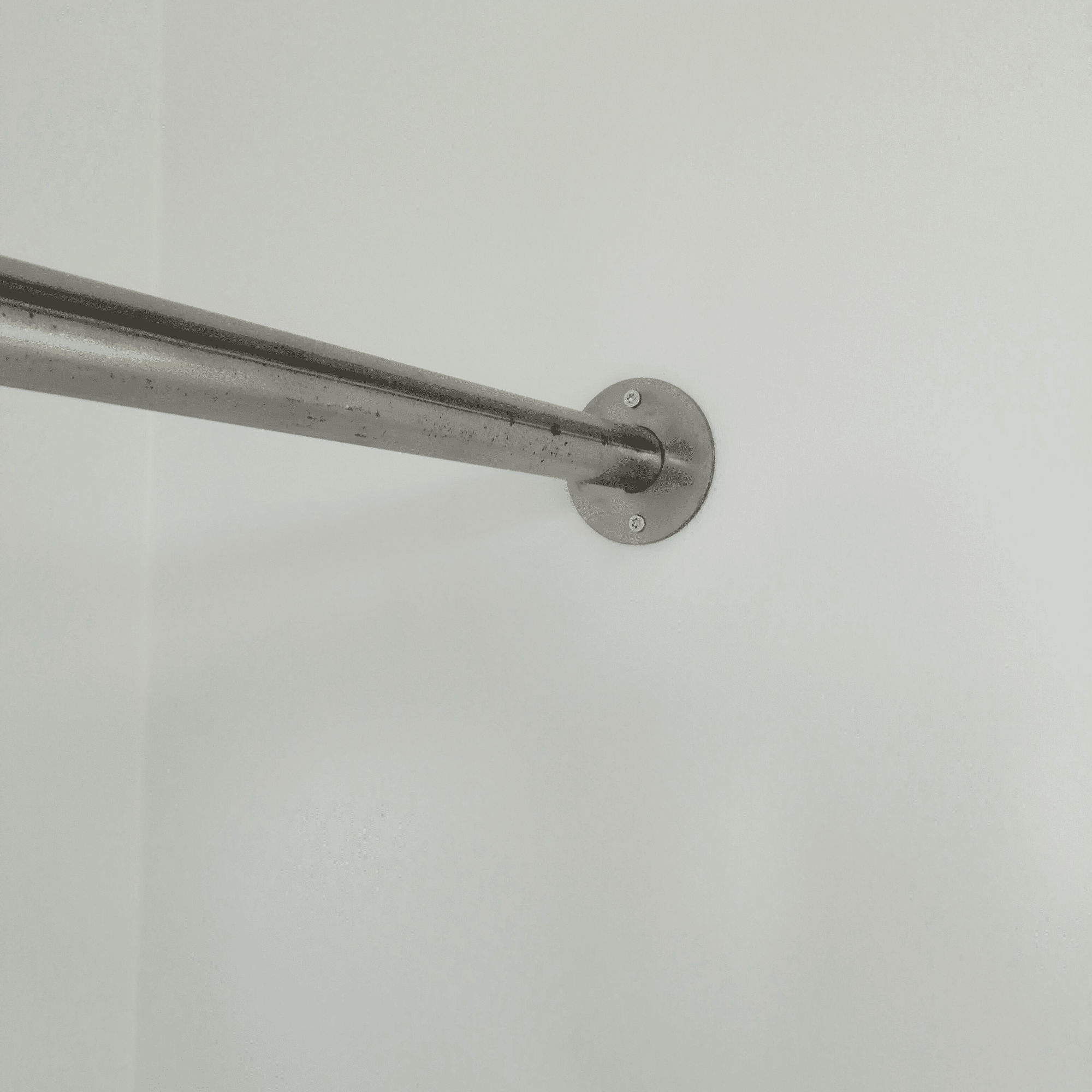 Garderobestangen er specialfremstillet i råt jern, så den passer perfekt ind i et udhak i rummet. Den kombinerer funktionalitet med et råt, industrielt udtryk, der giver karakter til rummet.