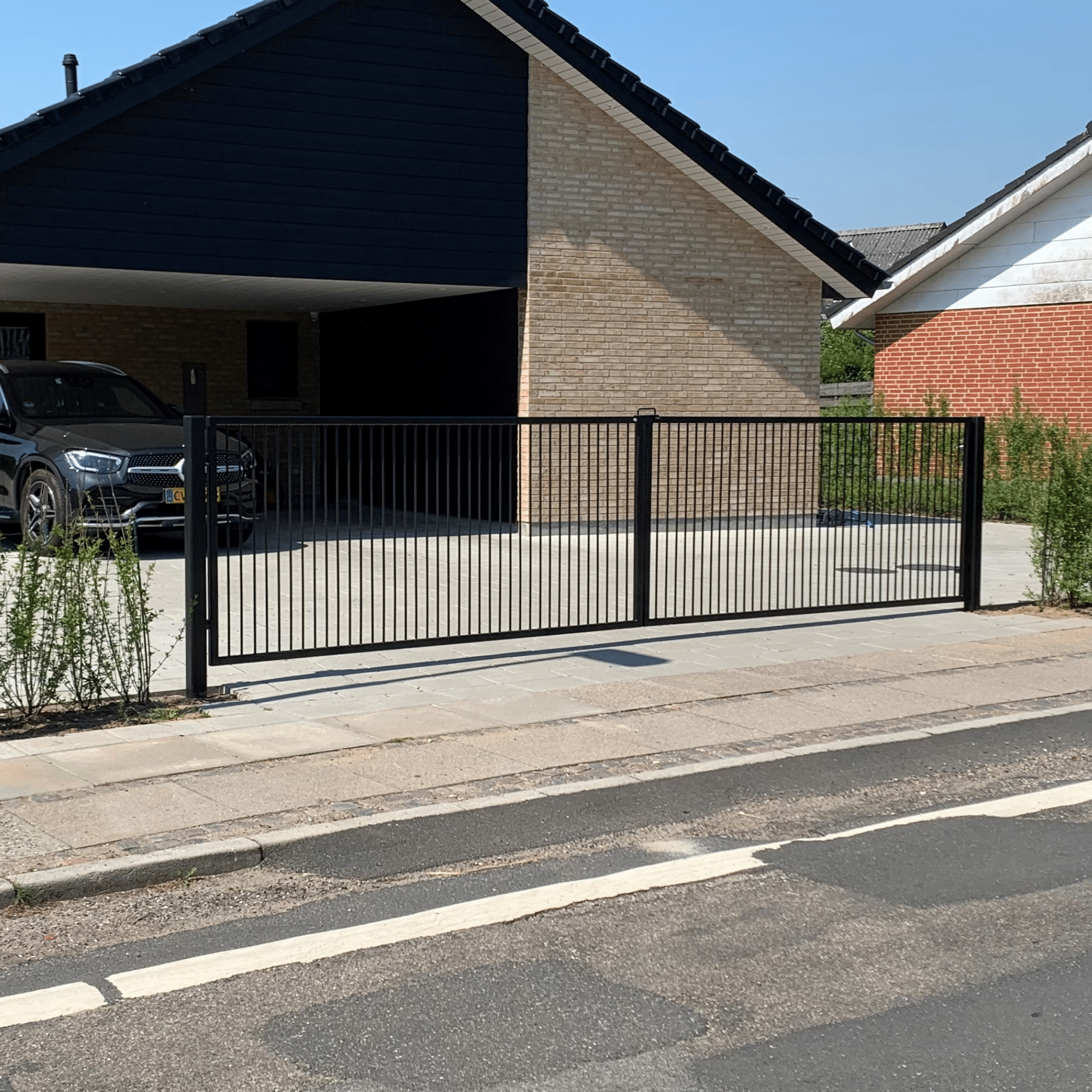 Låge og hegn i et, pulverlakeret sort, hvilket giver en meget slidstærk overflade og flot finish.