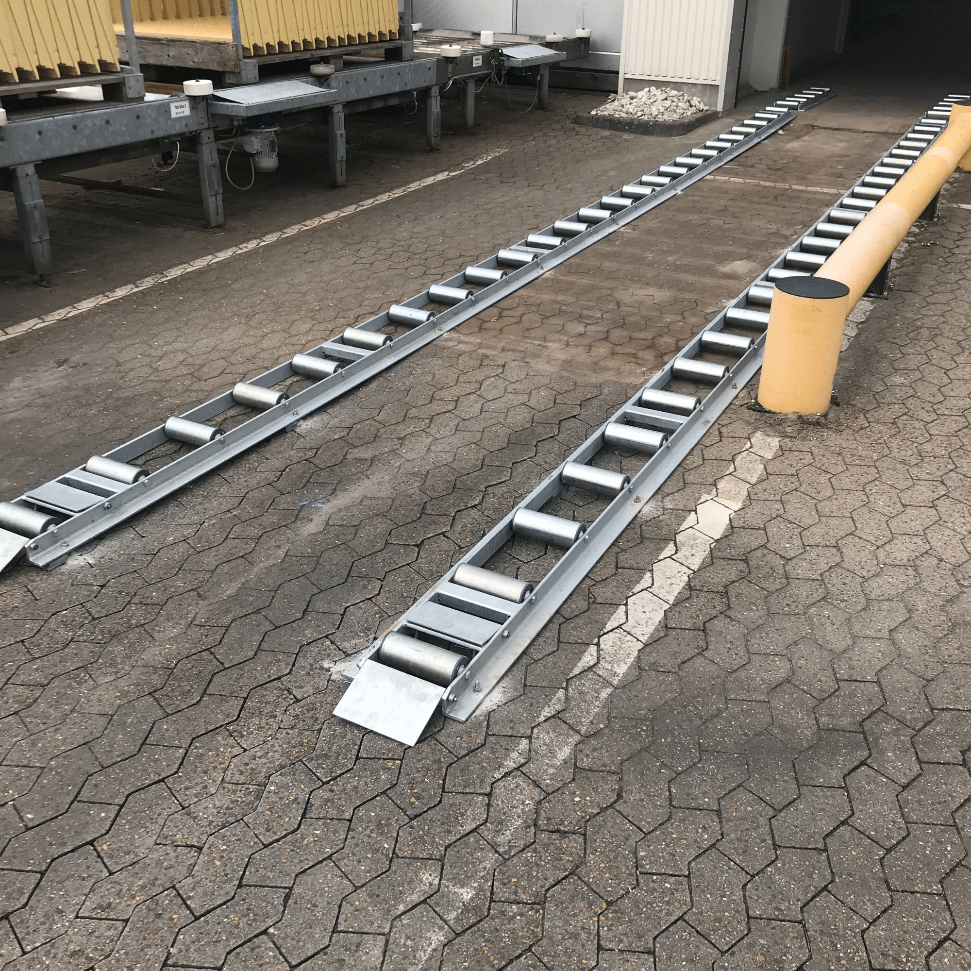 Disse smarte og praktiske rullebaner er specialfremstillet efter kundens ønsker og behov for at effektivisere dagligdagen, samtidig med at de ansattes arbejdsmiljø er i fokus. Rullebanerne er monteret både indvendigt og udvendigt, så varerne kan transporteres nemt og sikkert.