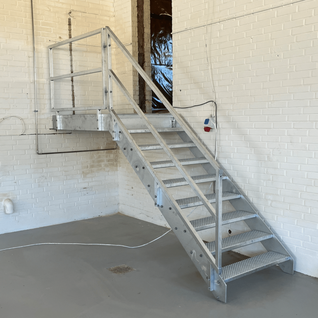 Forside / Produkter / Smedearbejde / Industri / Inspiration / Trappe med repos, Galvaniseret