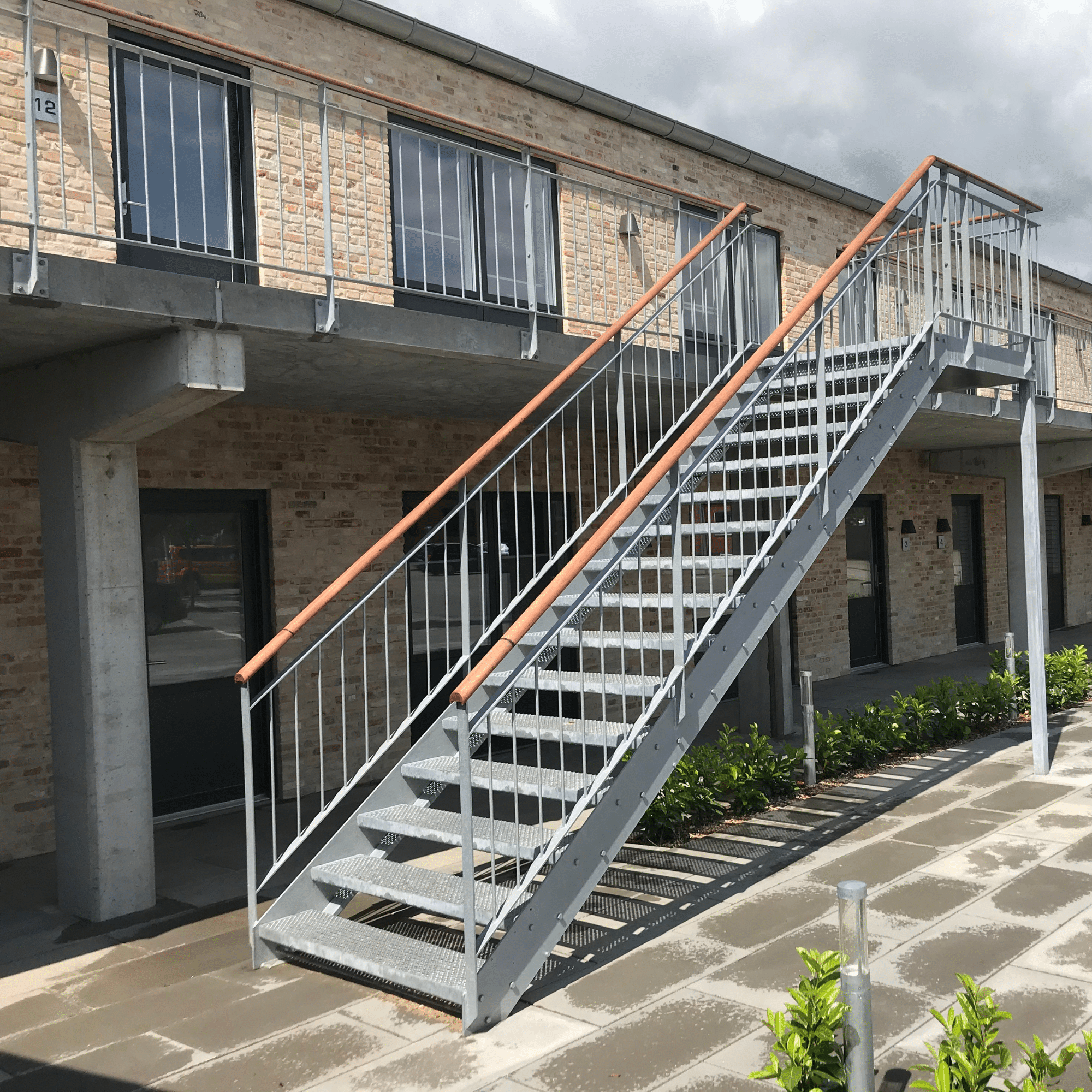 Mangler du en udvendig trappe, brandetrappe eller lign. Så kunne dette måske være en god løsning. Her med et lækkert finish i form af en træhåndliste!